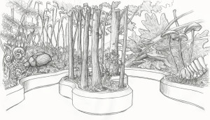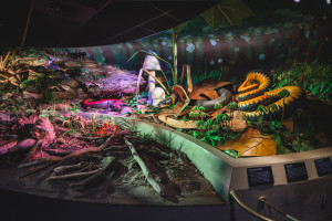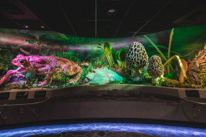 The Oak Forest room features larger-than-life dioramas that give the illusion of walking amongst the oak forest at 1/16th the size of an average human. The dioramas highlight the plant and animal life that roam the forest floors in Ohio.