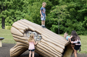 The Secor Park donor recognition project incorporates sentiment and interaction. The hollow log provides a fun interactive space for children to climb in while displaying the names of donors “carved” into the trunk or the tree.