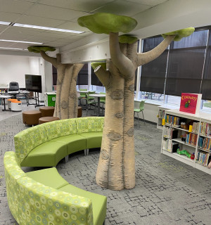 GD+B worked with Maumee City Schools to design and build a series of interactive storybook trees for their school library. The trees incorporate cubbies for storage and display and provide visual interest to the space.